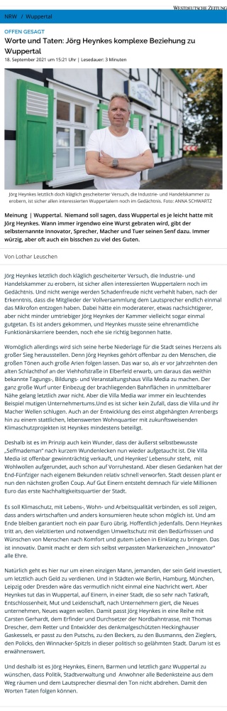 Wuppertaler Rundschau vom 14.09.2021: