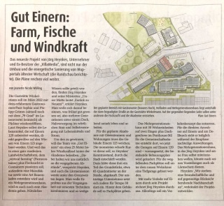Wer Sonntagnachmittag am Grundstück Einern 120 vorbei fuhr, dem bot sich ein ungewohntes Bild: auf dem Vorplatz des alten „Haus Winkelmann“ standen viele Menschen, die interessiert dem Geschehen im Innern der Scheune folgten. Kein Wunder, denn das was Jörg Heynkes und seine Mitstreiter dort präsentierten, wird auf Einern einen ganz neuen Impuls setzen. „GUT EINERN soll nicht nur ein in sich schlüssiges Quartier werden, in dem Menschen gemeinsam nachhaltig leben und arbeiten können, sondern auch in das gesamte Gebiet hinein wirken“, erklärte Heynkes, der die Grundstücke Einern 120/ 123 mit seiner Partnerin Silke Wilke gekauft hat.
